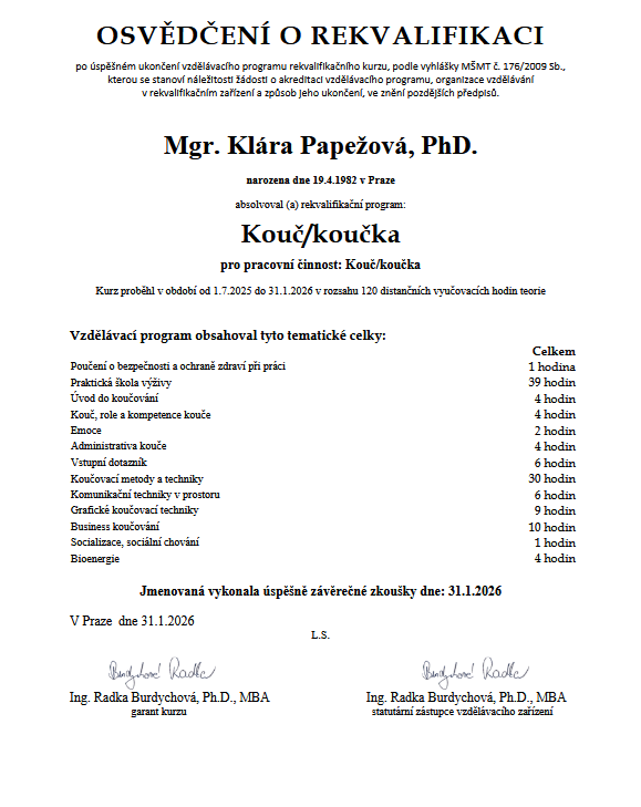 KOUČ - Vzdělávací program akreditován MŠMT leden 2023 pod čj.: MSMT-596/2023-2